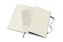 Zápisník má  pevnou, ve hřbetu šitou vazbu potaženou látkou. Obepíná ho pružná páska proti samovolnému otevírání. Obsahuje praktickou vnitřní kapsu, textilní záložku a leták s historií Moleskine. Papír s gramáží 70 g/m2 neobsahuje kyseliny. przeczytaj całość