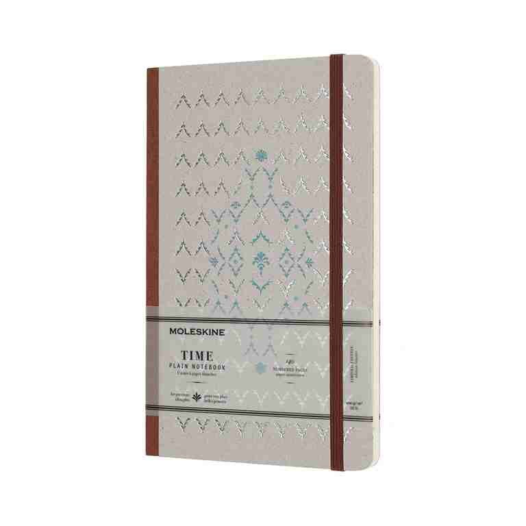 Time zápisník po vzoru knih z 18. a 19. století s mramorovanou předsádkou a papírem s gramáží 100 g/m². Stránky jsou očíslované. Obálku zdobí písmo a znaky, které nám připomínají starožitné texty.