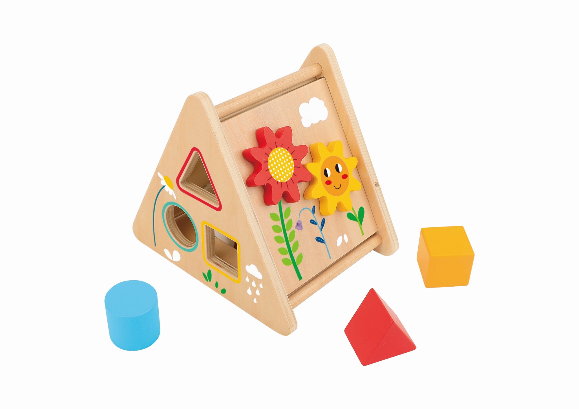 Drevený trojuholník s piatimi stranami prináša nekonečné množstvo aktivít pre vaše dieťatko. Zabaví sa s geometrickými tvarmi či kvietkami v skladačke.