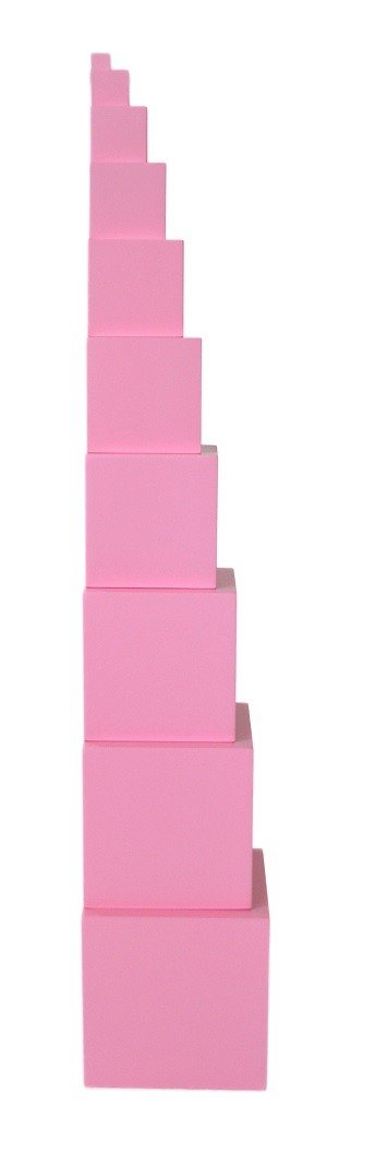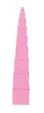 Smyslový materiál k vnímání rozměru ve třech dimenzích. Příprava na desetinnou soustavu v matematice, geometrii a objem. Materiál se skládá z deseti růžových dřevěných krychlí (nejmenší má strany o délce 1 cm, největší 10 cm). Růžová věž je symbolem všech montessori pomůcek. Její jednoduchost a...