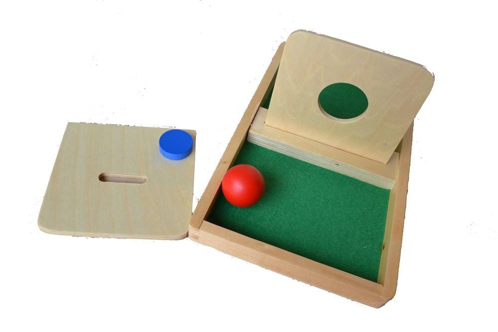 Otvorem v dřevěné vyjímatelné tabulce uprostřed tácu děti prostrkávají disk nebo míček. Tak rozvíjejí koordinaci oka a ruky a procvičují pohyb prstů a zápěstí.Sada obsahuje dvě vyjímatelné tabulky (na disk a na míček) przeczytaj całość