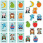 Zawartość opakowania: 12 dużych kart, 12 kolorowych kształtów
