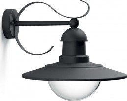 Zewnętrzny kinkiet Topiary z serii produktów Philips myGarden ma elegancki, rustykalny styl, który efektownie oświetli wejście do domu, ogród lub taras. Obudowa lampy wykonana jest z wysokiej jakości odlewanego ciśnieniowo aluminium w matowej czarnej kolorystyce, a klosz z trwałego, przezroczystego gładkiego szkła. Wewnątrz znajduje się oprawka E27, maksymalna moc źródła 1 x 60 W. Źródło światła nie jest dołączone do zestawu. Dla oszczędności energii zalecamy użycie żarówki energooszczędnej lub LED. Stopień ochrony IP44 oznacza wodoodporność i przydatność do stosowania w wilgotnym środowisku zewnętrznym. Oświetlenie zewnętrzne W dzisiejszych czasach zewnętrzne oświetlenie ogrodowe jest nieodłącznym elementem każdego domu i ogrodu. W ofercie znajdują się zarówno kinkiety, jak i lampy sufitowe czy wiszące, a także słupki, lampy stojące czy oprawy gruntowe na tradycyjne lub energooszczędne źródła LED. Oczywiście istotna jest także jakość użytych materiałów, aby zapewnić długą żywotność opraw i odporność na warunki atmosferyczne. Philips myGarden Oprawy z serii myGarden mają ponadczasowy, nowoczesny design i są przeznaczone specjalnie do użytku zewnętrznego. Zostały zaprojektowane i wykonane z myślą o oszczędności energii przy zastosowaniu materiałów najwyższej jakości, aby zapewnić długą żywotność i wysoką trwałość. Do ich produkcji używa się stali nierdzewnej lub odlewanego aluminium, wysokiej jakości tworzyw sztucznych lub szkła. Oprawy są odporne na wodę zgodnie ze standardem IP, a ich elementy wewnętrzne również cechuje wysoka trwałość. Montaż jest prosty i bezproblemowy. Stopień ochrony IP44 Oprawy zewnętrzne są specjalnie wykonane do wilgotnych warunków zewnętrznych, odporne na wpływy pogodowe i testowane pod kątem wodoodporności. Oznaczenie stopnia ochrony IP określa dwa parametry. Pierwszy to stopień ochrony przed pyłem, drugi przed wodą. Oprawy o stopniu ochrony IP44 są chronione przed wnikaniem obcych, stałych cząstek o średnicy powyżej 1 mm oraz przed rozbryzgami wody.