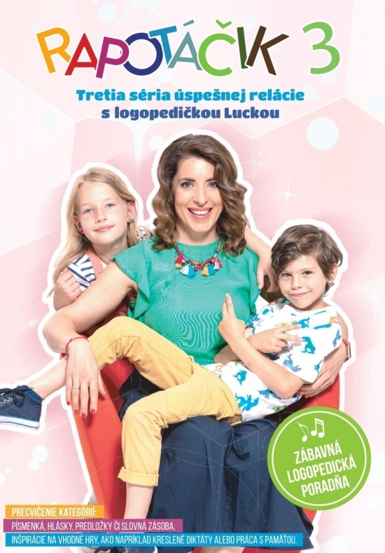 Opäť sú tu nové veselé logopedické pesničky pre vaše detičky! Adelka Heftyová naspievala ďalšiu sériu pesničiek, v ktorých si spolu precvičíte písmenká, hlásky, predložky či slovnú zásobu. Tiež sú vhodné na posilnenie práce s pamäťou. Rapotáčik pomáhaj! Na DVD Rapotáčik 3 nájdete všetky pesničky...
