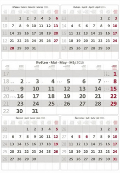 Kalendář nástěnný 2016 - Pětiměsíční - šedý