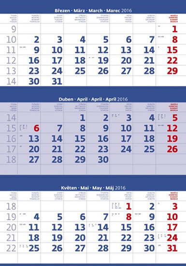 Kalendář nástěnný 2016 - Tříměsíční - modrý