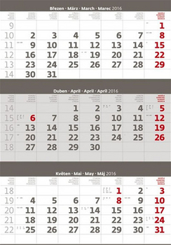 Kalendář nástěnný 2016 - Tříměsíční - šedý