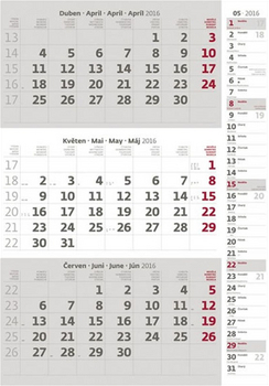 Kalendář nástěnný 2016 - Tříměsíční - šedý s poznámkami
