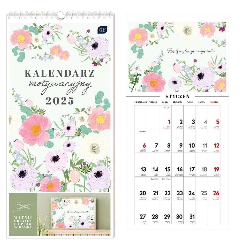 Kalendarz 2025 motywacyjny 22x46cm Kwiaty przeczytaj całość