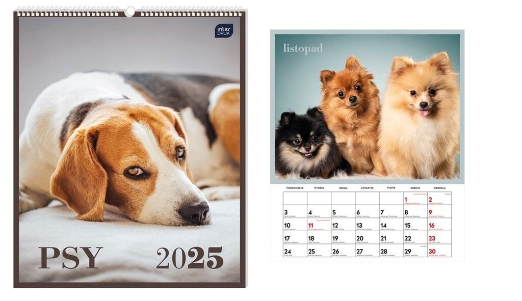 Kalendarz 2025 ścienny planszowy 33,5x40cm Psy