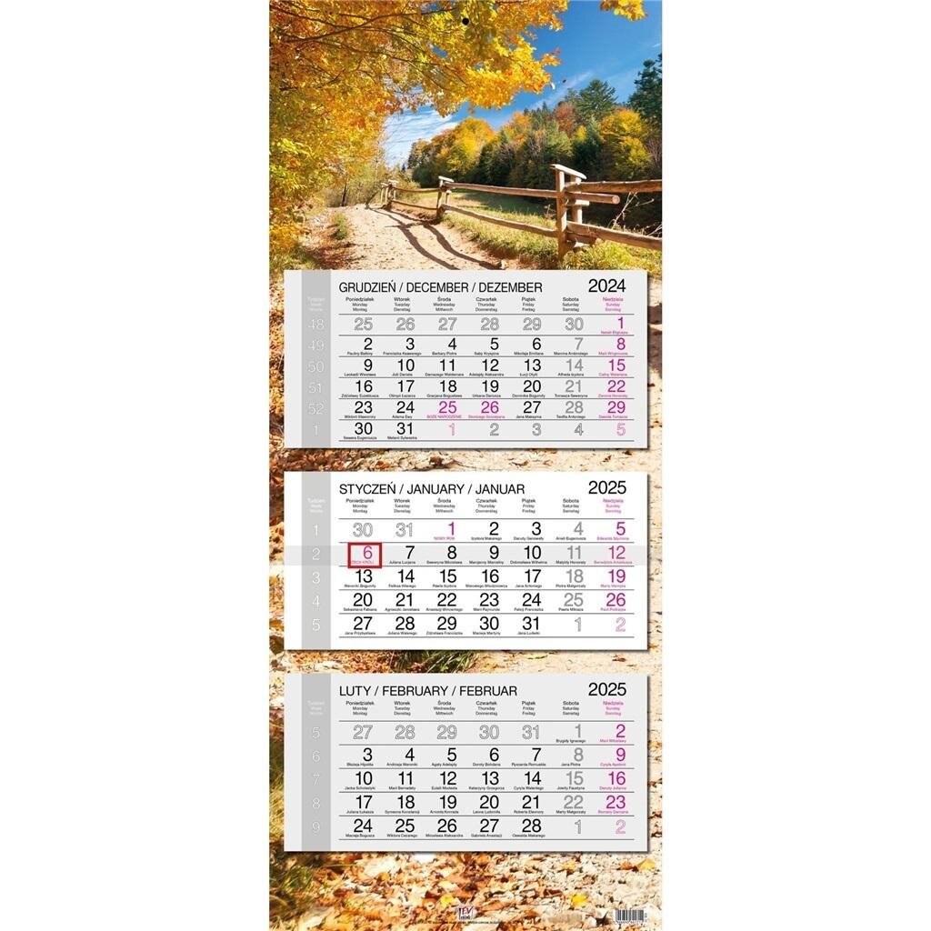 Kalendarz 2025 trójdzielny główka płaska Krajobraz