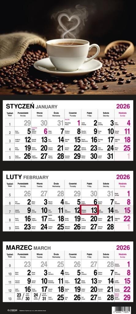 Kalendarz 2026 Trójdzielny Kawa