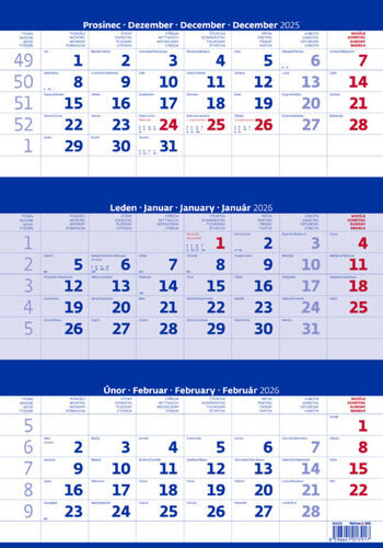 Tříměsíční kalendář modrý 2026 - nástěnný kalendář (czeski)