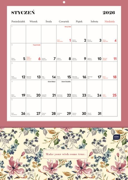 Kalendarz ścienny z kieszonką 2026 28x40 cm Blussom przeczytaj całość