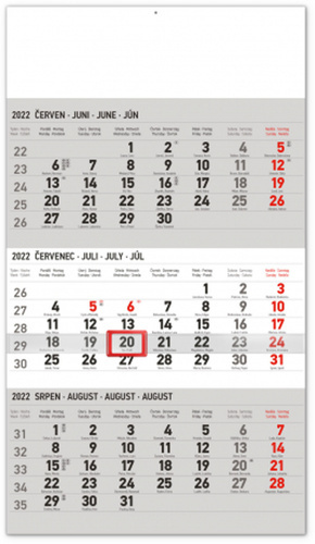 Nástěnný kalendář 3měsíční standard šedý – s českými jmény 2022 (czeski)
