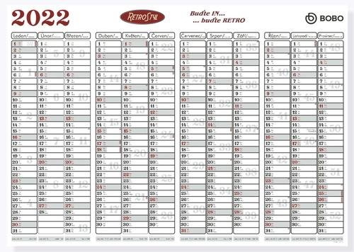 Plánovací roční mapa retro skládaná 2022 - nástěnný kalendář (czeski)
