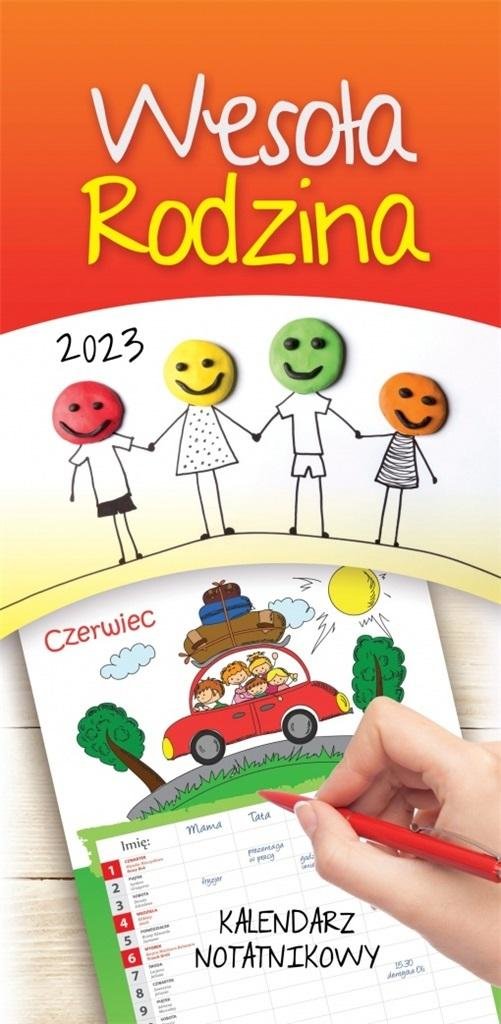 KALENDARZ RODZINNY/NOTATNIKOWY "WESOŁA RODZINA" 12 plansz, układ miesięczny, miejsce do notowania, rozmiar 22x46cm, okładka lakierowana, kalendarz na spirali z zawieszką przeczytaj całość