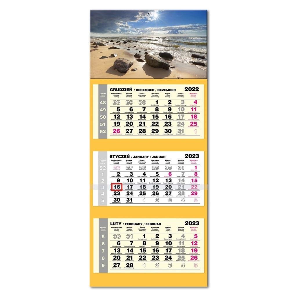 "Kalendarz ścienny 2023, trójdzielny* kalendarz ścienny, trójdzielny z główką wypukłą !!!* wymiary: 33,5 x 76,5 cm* układ miesięczny z poprzednim i następnym miesiącem* posiada numerację tygodni, imieniny* nazwy miesięcy i dni tygodnia w języku polskim, angielskim, niemieckim* kalendaria w...