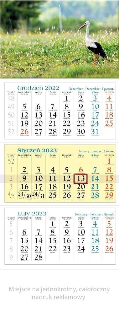 format kalendarza z "główką" i polem pod nadruk reklamowy 32 x 86 cm;kalendarze ścienne z całoroczną główką i zrywanymi kartami kalendarium;główka format: 32 x 20 cm; oprawiona z efektem wypukłości, doklejona do pleców;kalendarium: trzy oddzielne bloczki (30 x 15 cm), doklejone do pleców;...