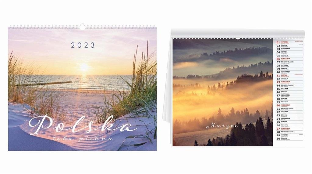 Kalendarz ścienny na spirali o wymiarach 33,5 x 40 cm. Kalendarium w układzie miesiąc na stronie. 12 dużych i pięknych grafik na każdy miesiąc. Zaznaczone imieniny, najważniejsze daty i święta. przeczytaj całość