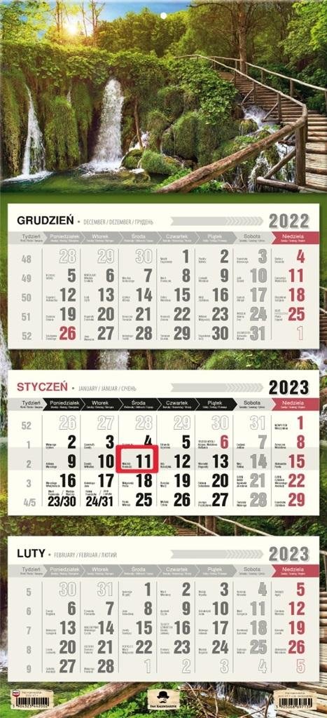 Kalendarz 2023 trójdzielny płaska główka Wodospad