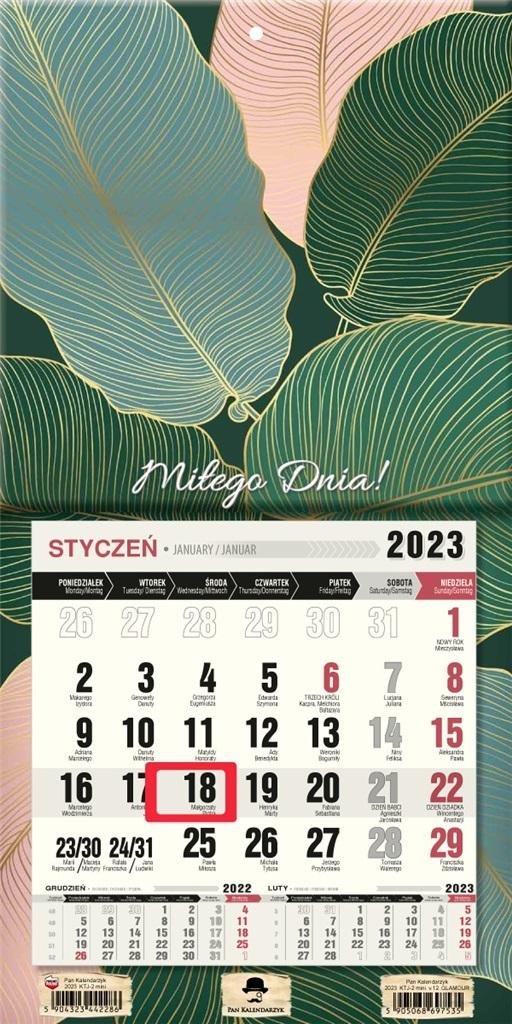 Kalendarz 2023 trójdzielny jednodzielny.. Liście