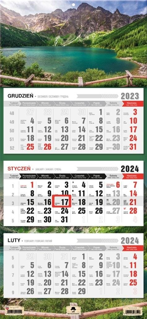 Kalendarz Trójdzielny z płaską główką. Format 315/680mm. Trzy komplety klasycznych kalendariów z przesuwnym okienkiem. Główka z otworem wierconym. Dodatkowo nazwy miesiąca i dni tygodnia w języku Ukraińskim, Angielskim i Niemieckim. Kalendarium dodatkowo zawiera fazy księżyca i znaki zodiaku.... przeczytaj całość