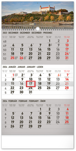3-mesačný Nástenný kalendár 2024 - Bratislava šedý so slovenskými menami (słowacki)