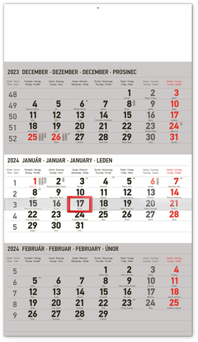 3-mesačný Nástenný kalendár 2024 - šedý so slovenskými menami (słowacki)