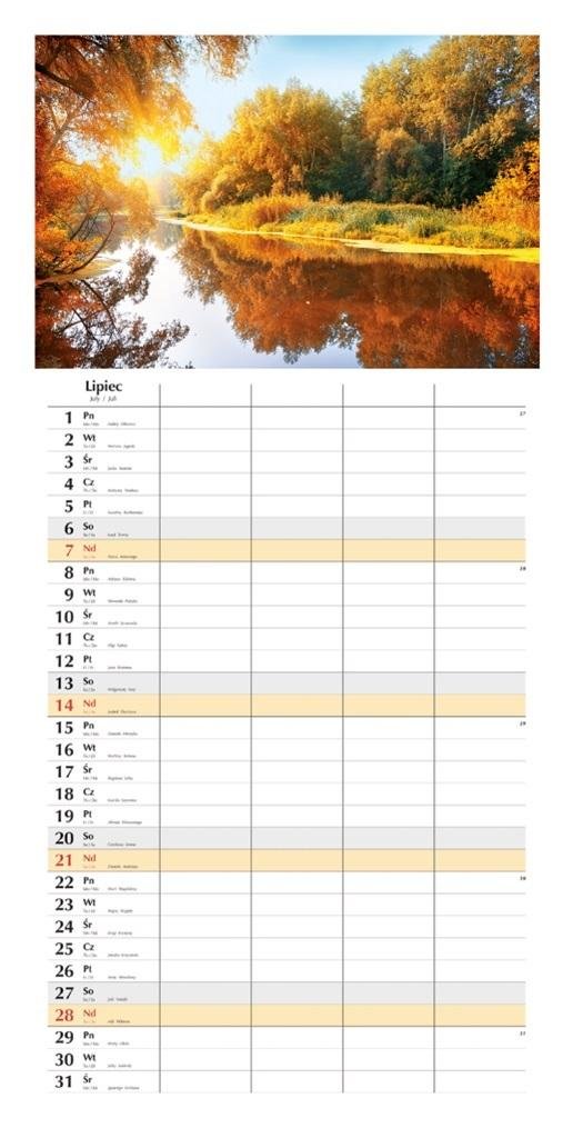 format: 290x471 mmrodzaj papieru: offset 80g/m2 białyukład kalendarium: 1 miesiąc - 1 stronailość stron: 12druk: pełnokolorowyGłówka pełnokolorowa. Możliwość zaplanowania zajęć dla całej rodziny. przeczytaj całość