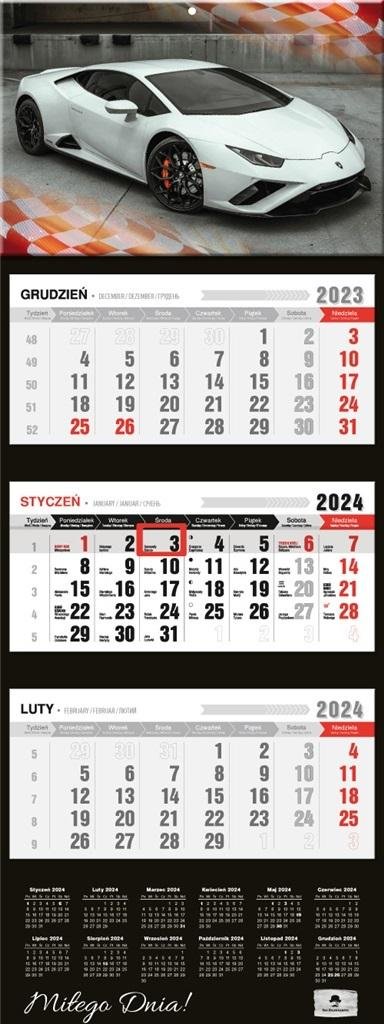 Kalendarz Trójdzielny PREMIUM Z WYPUKŁĄ GŁÓWKĄ. Format 315/810mm. Trzy komplety klasycznych kalendariów z przesuwnym okienkiem. Główka z otworem wierconym. Dodatkowo nazwy miesiąca i dni tygodnia w języku Ukraińskim, Angielskim i Niemieckim. Kalendarium dodatkowo zawiera fazy księżyca i znaki...