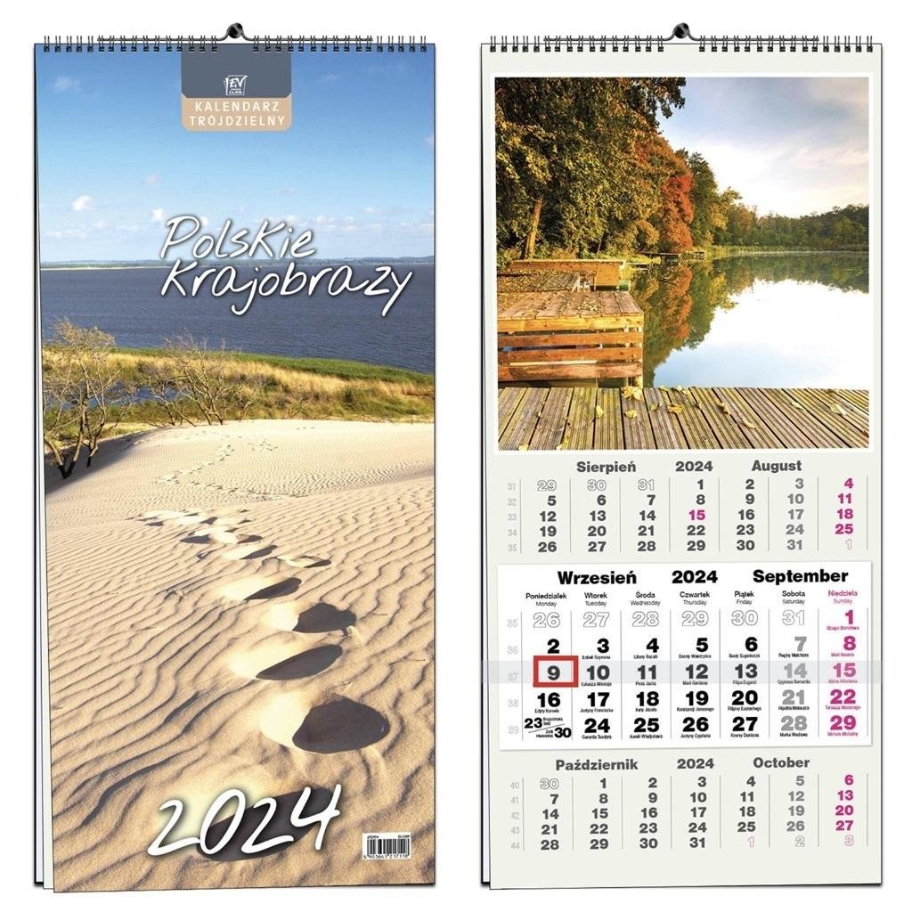 Kalendarz 2024 trójdzielny 13 plansz PL Pejzaże