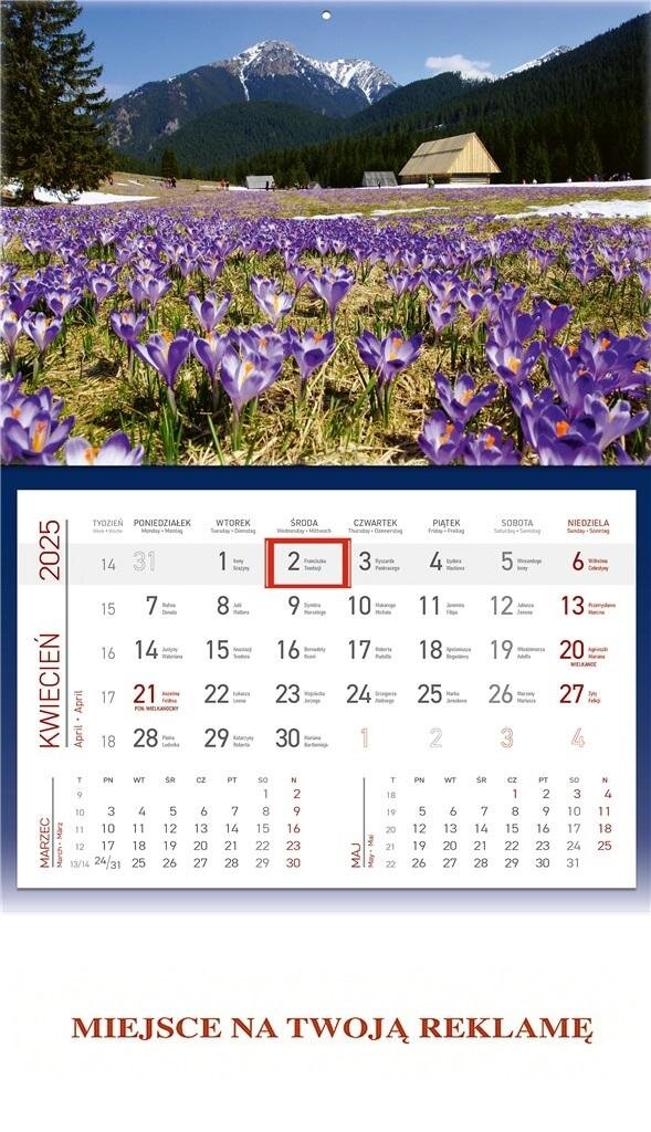 Kalendarz 2025 ścienny jednodzielny Tatry