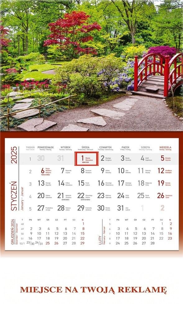 Kalendarz 2025 ścienny jednodzielny Ogród