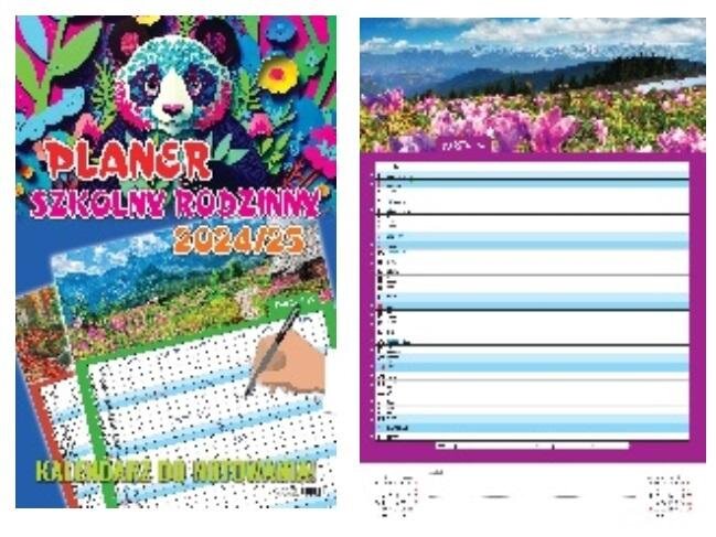 Kalendarz 6 kolumnowy do planowania każdego dnia miesiąca dla rodziny. Kolorowe grafii na 16 planszach. Miejsca na zapiski. Imieniny, Niedziele handlowe, Święta. 16-sto miesięczne kalendarium na rok 2024/2025. przeczytaj całość