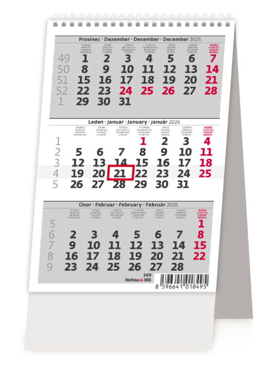MINI trzymiesięczny kalendarz planistyczny 2026Wyprodukowano w Czechach przeczytaj całość