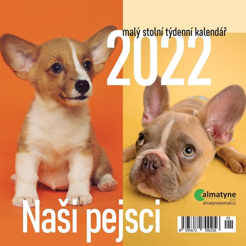 Kalendář 2022 - Naši pejsci, malý stolní týdennní, 143 x 140 mm (czeski)