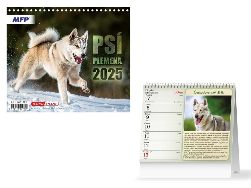 Stolní kalendář na rok 2025 mini s názvem Psí plemena. Kalendář je určený pro milovnice a milovníky psů. Vhodný pro zapisování důležitých poznámek, k organizování různých událostí každodenního života. Možnost dotisku firemního loga a textu na spodní stranu kalendáře. TYP KALENDÁŘE: stolní...