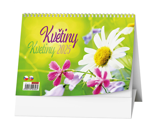 Stolní kalendář s týdenním kalendáriem s obrázky květin. przeczytaj całość