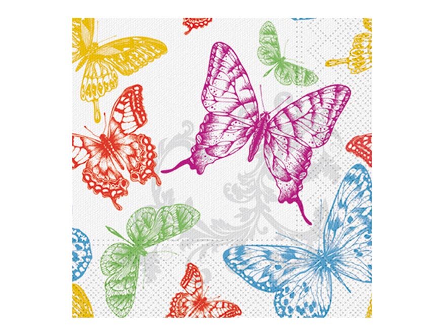 Celoloroční ubrousek s barevnými motýlyVeselý motiv pestrobarevných motýlů na ubrousku vnese na váš stůl radost a lehkost. Skvěle se hodí nejen na jarní nebo letní posezení, ale díky svému univerzálnímu designu i pro celoroční využití.Ubrousek je třívrstvý, pevný a praktický. Uplatní se při...