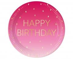 Talerzyki papierowe Pink Happy Birthday 23cm 8szt