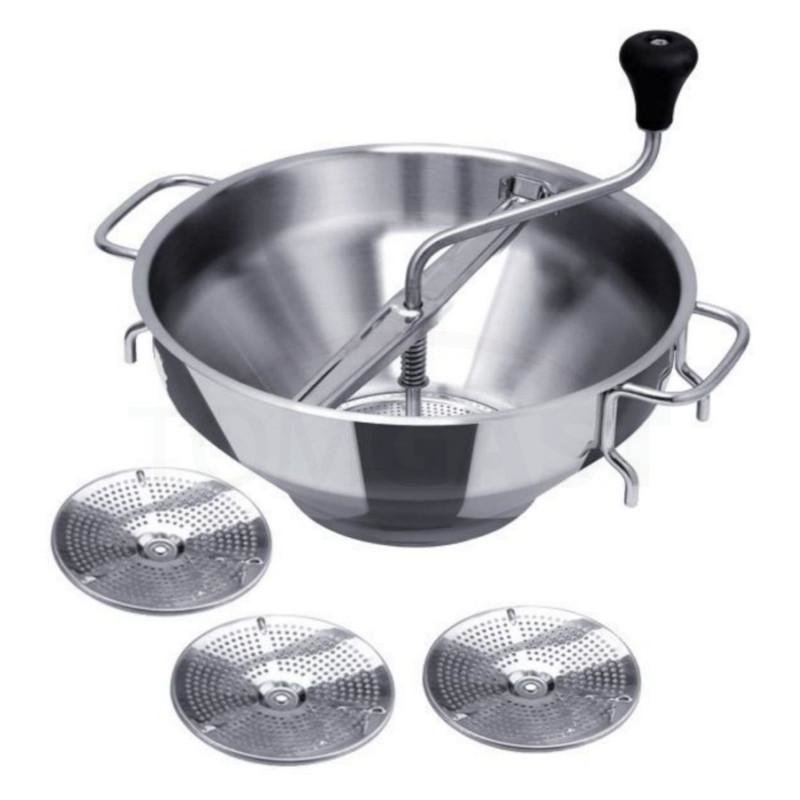 Profesionální pasírka se třemi vyměnitelnými disky. Pasírka Jumbo na hrnec 26 cm Pasírka Jumbo na hrnec 26 cm Parametry Materiál: nerezová ocel Průměr: 26 cm Objem: 5 l 3 disky v sestavě Cena uvedena za 1 kus/1 ks v originálním balení Využití pasírky Pasírka na hrnec. przeczytaj całość