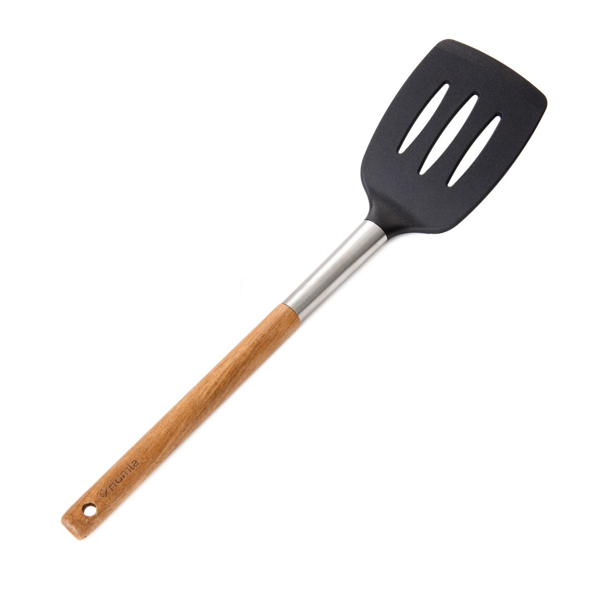 Kuchyňské náčiní z řady MOOKA je výbornou volbou do kuchyně. Díky dřevěné rukojeti a klasické černé barvě zapadnou do vzhledu mnoha domácností. Mohou se stát domácí dekorací, a to nejen užitečnými předměty. Stěrka s otvory MOOKA Vám usnadní nanášení např. hranolků, které můžete ihned scedit z...