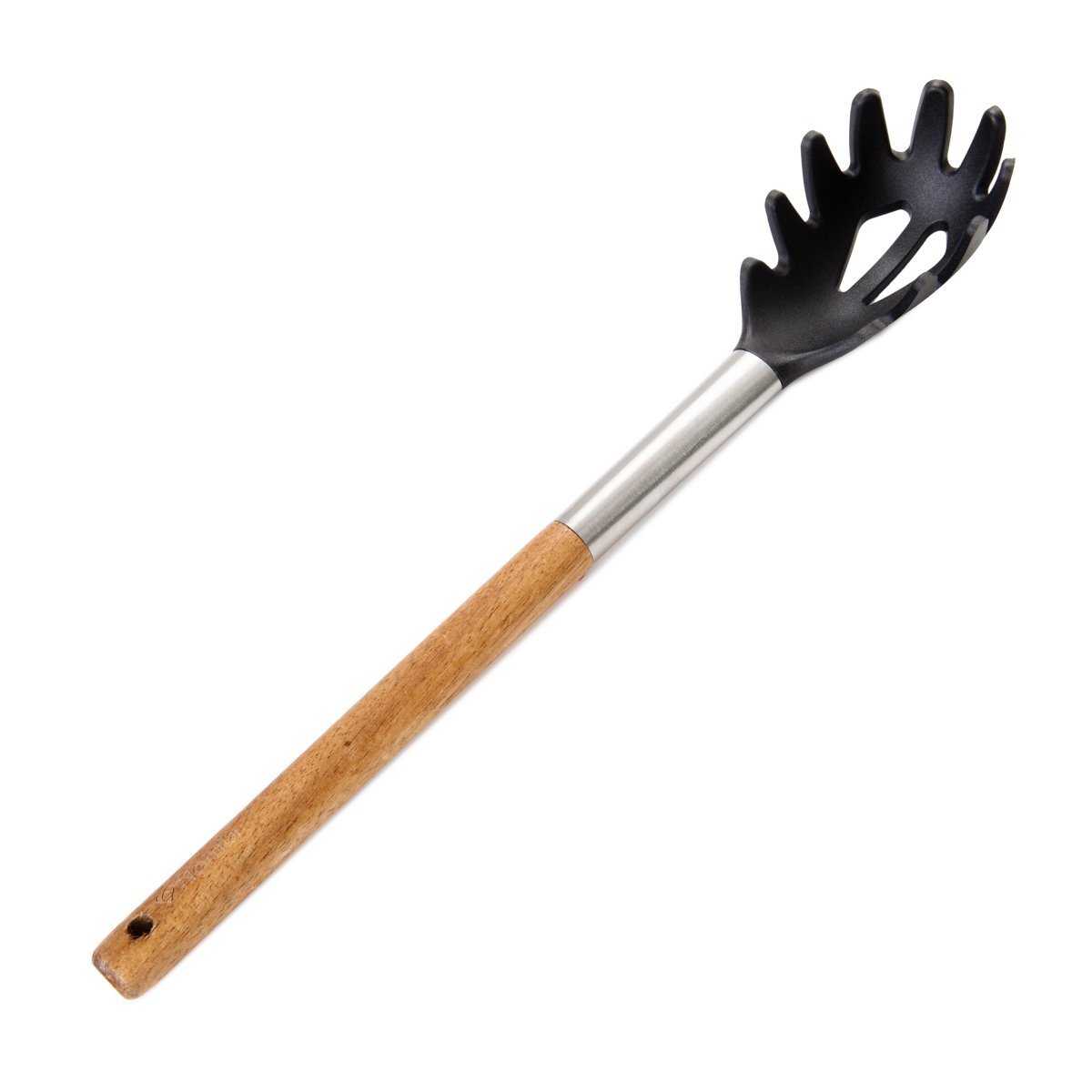 Kuchyňské náčiní z řady MOOKA je výbornou volbou do kuchyně. Díky dřevěné rukojeti a klasické černé barvě zapadnou do vzhledu mnoha domácností. Mohou se stát domácí dekorací, a to nejen užitečnými předměty. Lžíce MOOKA Vám usnadní nanášení těstovin. Stylová kombinace černé, dřeva a stříbrné...