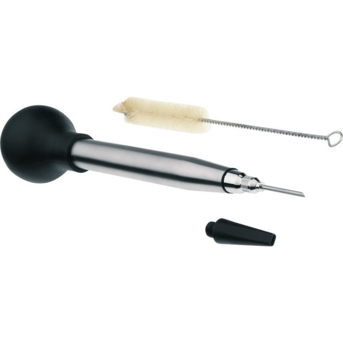Tato plnící jehla představuje ono tajemství pro přípravu dokonale propečeného masa. Umožňuje podlévat maso během vaření, aby se nevysušilo, nebo vstříknout šťávu do jeho středu, aniž byste se přitom spálili. K tomu slouží 2 tipy: široká špička pro podlévání a špička jehly pro vstřikování šťávy....