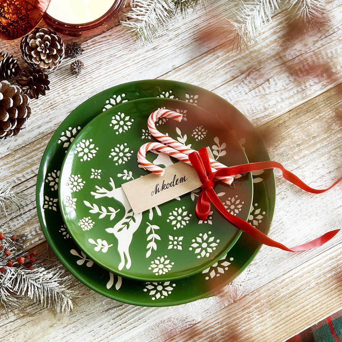Talíř | AVERO | dezertní talíř zelený s jelenem | 21 cm | 870618 Homla