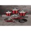 - Bohatě vybavená sada nádobí z ikonické červené kolekce Burgundy Metallic zaujme nejen nepřehlédnutelným moderním designem, ale především svými jedinečnými vlastnostmi- doménou této sady je 3vrstvý povrch s mramorovým designem charakteristický svou dokonalou nepřilnavostí, žádné potraviny se nepřipalují a díky tomu se kastroly i pánve velice snadno čistí- zároveň je vhodný pro zdravé vaření s minimem tuku, v závislosti na použitých surovinách klidně i bez jediné kapky tuku- vnitřní i vnější vrstva neobsahují žádné škodliviny, výsledné pokrmy tak neztrácí vařením svoje vitamíny- zesílené nerezové Turbo indukční dno pro maximální efektivitu přípravy pokrmu- energeticky úsporné vaření zajišťuje korpus z odolného kovaného hliníku, který se rychle nahřívá po celém povrchu a má perfektní tepelnou vodivost- ušetříte až 35% energie a času oproti obyčejným nerezovým kastrolům- předností jsou také poklice z tvrzeného žáruvzdorného skla s nerezovým úchopem, které jsou po obvodu opatřeny okrajem z nerezové oceli 18/10- jejich dokonalý tvar dobře přilne k tělu hrnce i pánví a integrovaný otvor přirozeně reguluje množství páry uvnitř nádoby- stejné velikosti poklic lze bez problému použít také na stejně velké pánve- ergonomicky tvarované rukojeti mají protiskluzovou měkčenou úpravu, díky které příjemně padnou do ruky a umožní pevný a bezpečný úchop- díky izolačním prvkům zůstávají rukojeti po celou dobu vaření chladné a nepálí- zaoblený přechod mezi dnem a stěnami usnadňuje promíchávání obsahu- tělo kastrolů i pánví je zakončené zesílenými okraji pro lepší odolnost vůči nárazům- celá sada je vhodná na všechny druhy sporáků i na indukci- vhodné k zapékání v troubě i s poklicí do maximální teploty 160°C- díky nadstandartním nepřilnavým vlastnostem je čištění rychlé a nenáročné, stačí omýt teplou vodou a houbičkou- vhodné také do myčky na nádobí, pro zachování dlouhotrvajícího bezvadného stavu se doporučuje šetrný program- hrnce lze podle velikosti vkládat do sebe, což je velmi výhodné při skladování- součástí sady je i funkčně jedinečné kuchyňské náčiní z nylonu, které nikdy nepoškrábe Vaše nádobí, navíc má uprostřed praktickou nožičku, díky které je hlavice náčiní ve vzduchu, takže si při jeho položení nezašpiníte kuchyňskou linku- ideální pro každodenní vaření, dušení a smažení jakýchkoliv pokrmů- ECOfriendly, použité materiály neobsahují žádné škodliviny jako Pfoa, olovo ani kadmium- vysoce atraktivní moderní design v jedinečných metalických barvách- nádobí je díky svému perfektnímu vzhledu vhodné také pro přímé servírování pokrmů na stůl- kolekce: Burgundy Metallic Line- Sada 11 ks obsahuje:- Pánev 20 x 4,3 cm- Grilovací pánev s poklicí 28 x 28 x 4,1 cm- Kastrol s poklicí 20 x 10,5 cm / 2,5 litru- Kastrol s poklicí 24 x 12 cm / 4,1 litru- Kastrol s poklicí 28 x 12,5 cm / 6,1 litru- 2 ks odkládacích podložek pod nádobí