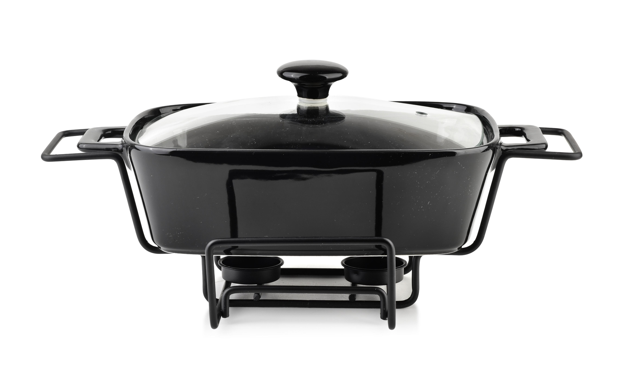 Naczynie z podgrzewaczem marki Allesken z serii MODERN KITCHEN poj.1,4L, 36x25x15cmto serwowanie potraw na co dzień i od święta. . Kolor: czarny, czarny stelaż . Materiał: kamionka...
