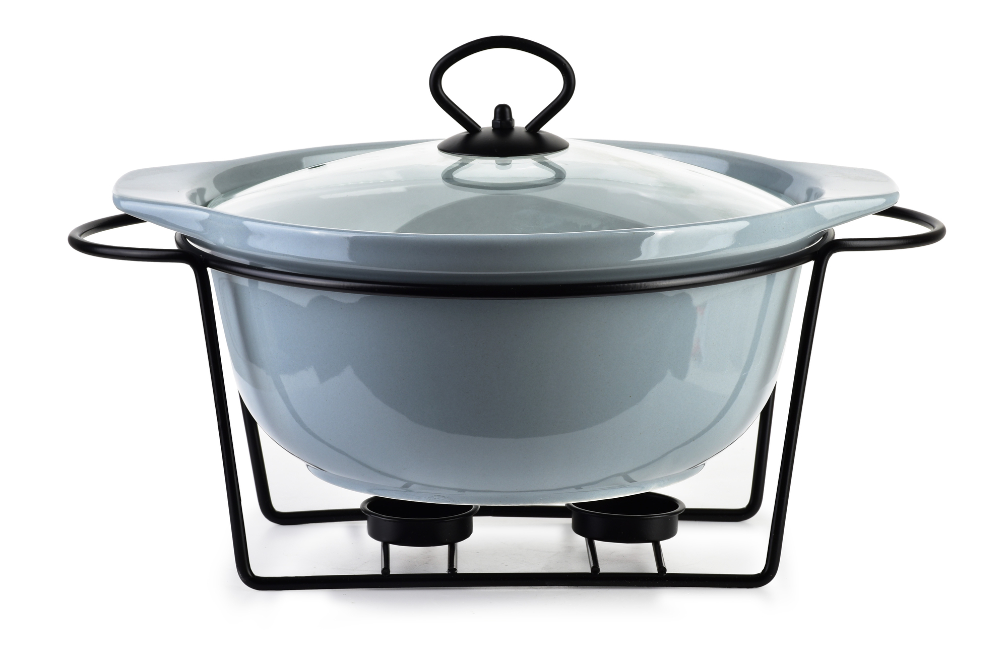 Owalne naczynie z podgrzewaczem marki Allesken by MONDEX z serii MODERN KITCHEN to idealne rozwiązanie do serwowania ciepłych potraw, które utrzymają swoją temperaturę. Wbudowane w metalowym stelażu miejsce na świeczki typu tea-light sprawia, że potrawy zostają ciepłe przez długi czas, co czyni...