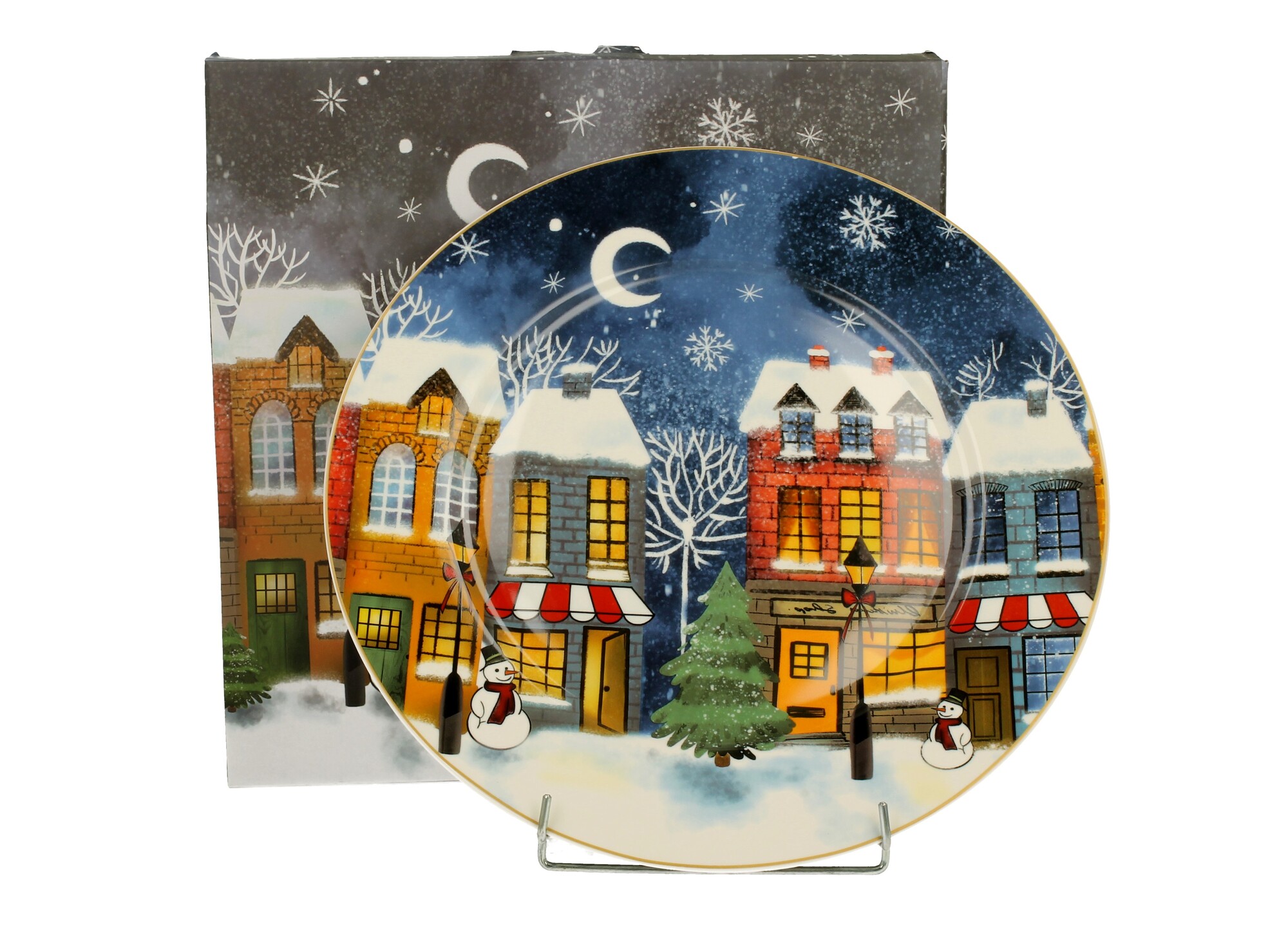 Talerz duży CHRISTMAS CITY wchodzący w skład serii Świątecznej, wykonany z porcelany New Bone China, charakteryzującej się elegancką i naturalną kremowo - białą barwą z delikatnym połyskiem, a także wyjątkową wytrzymałością.Linia zdobiona motywem malowanych kolorych kamieniczek. Mroźną zimową noc...